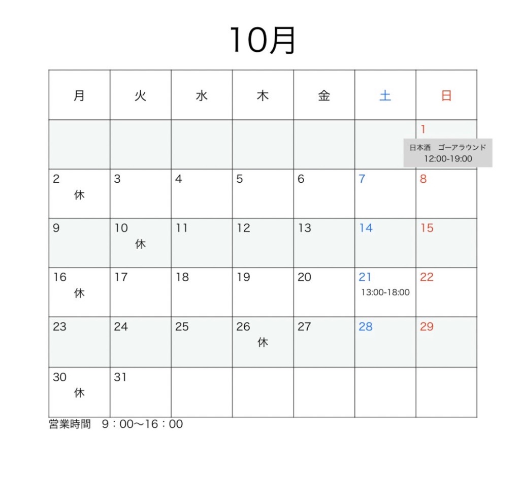 10月の営業日です🍂