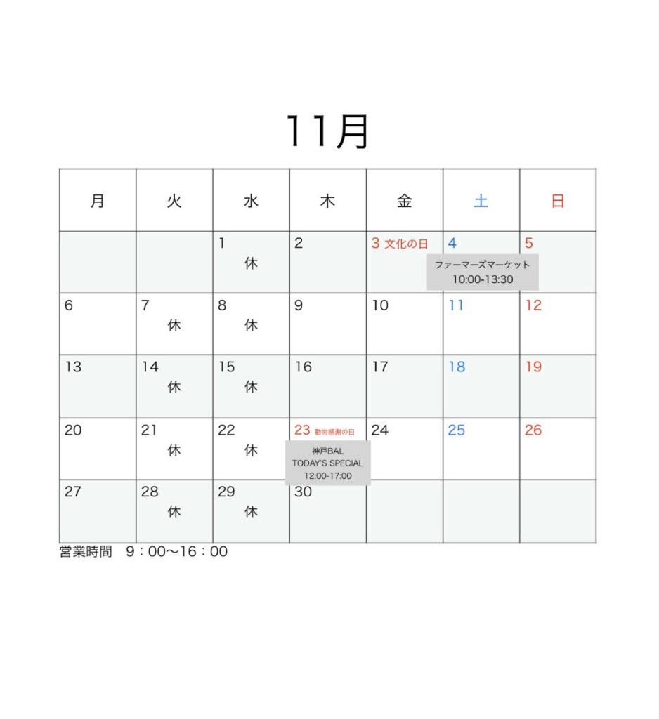 11月の営業日です🌝