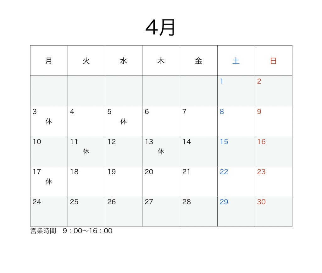 4月の営業日