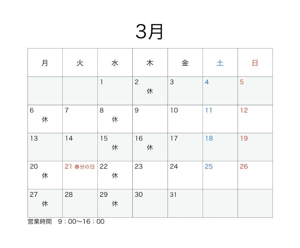 3月の営業日