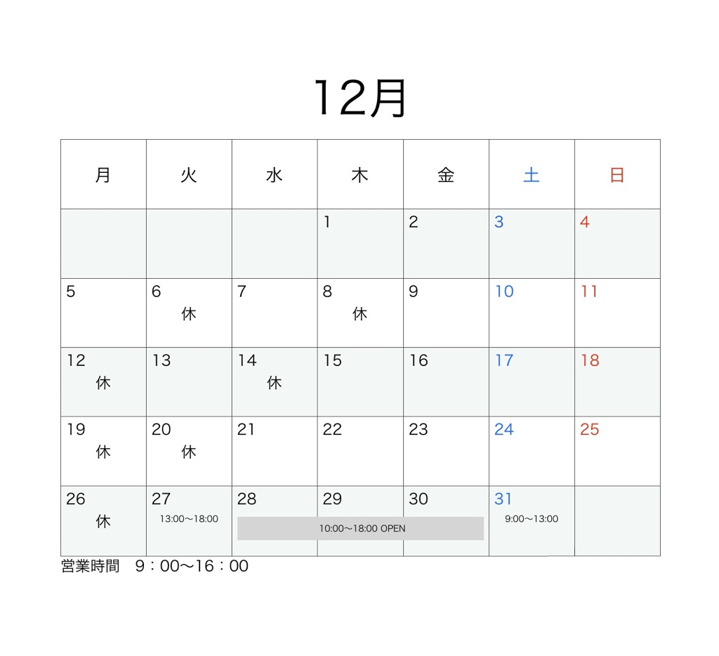 年末は営業時間が変わっておりますのでご確認をお願い致します。