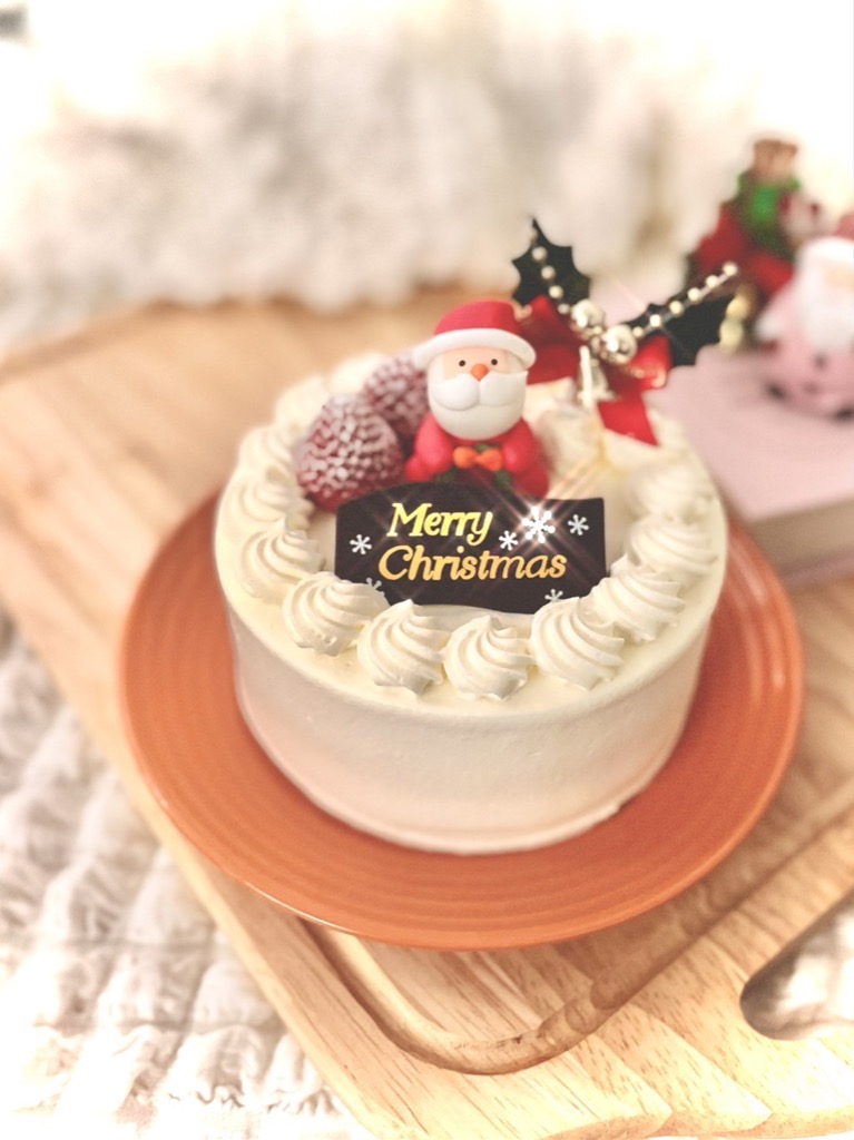 シンプルにサンタさん、ヒイラギ、プレート、苺で飾り付け🎅🏻